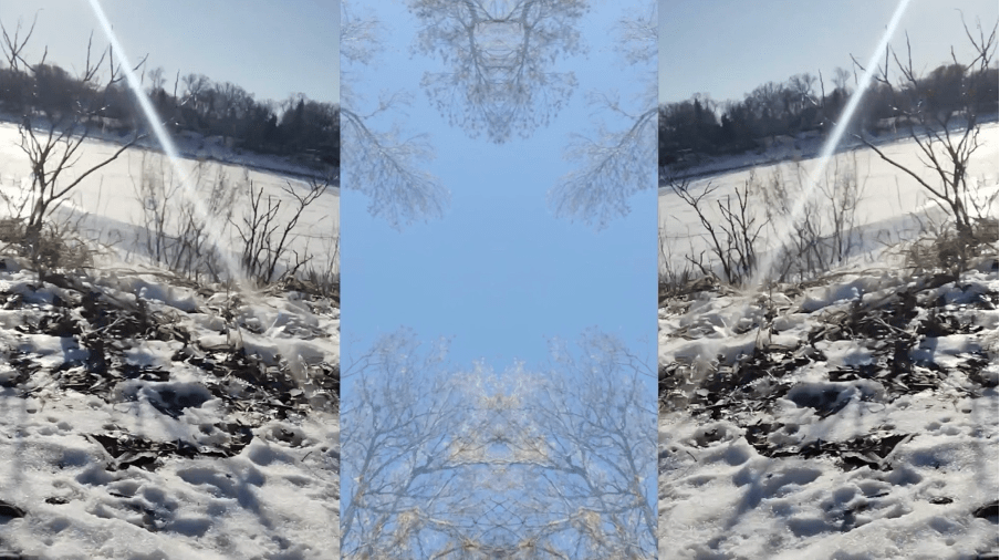 Jeni captured snow and sky by recording with a mobile phone attached to her leg and viewing upwards during the Canada spring