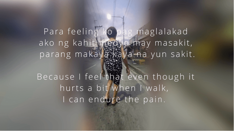 As we began to understand the varied assemblages of walking-pain-culture-place-task-landscape we came to recognise that each environment was encountered as an active collaborator. In the Philippines walkers documented urban locations where the purpose of walking was for transport rather than a leisure activity.